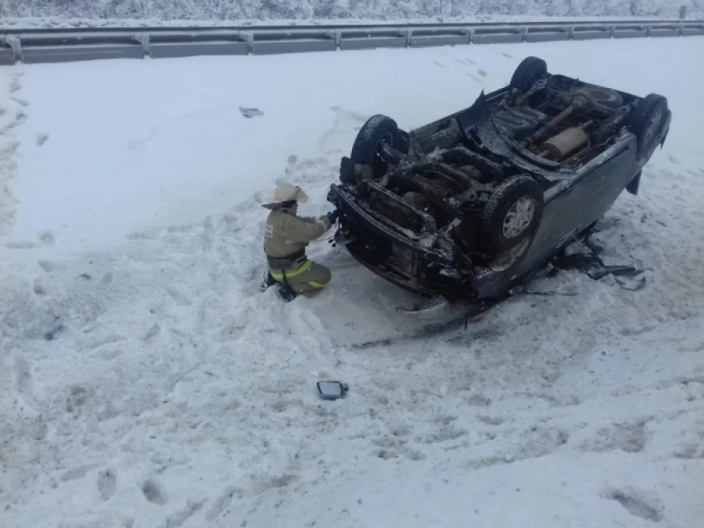 18 декабря в 10:30 на 283-м км трассы М-4 «Дон» произошло серьёзное ДТП. Автомобиль «Хендай» занесло на скользкой дороге, в результате чего он съехал в кювет и перевернулся на крышу.