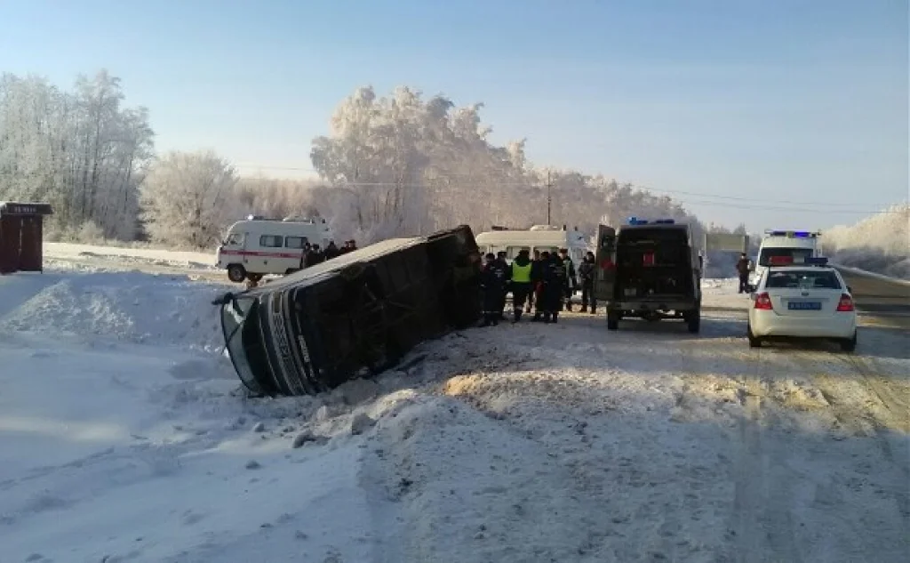 Предположительно, 57-летний водитель не справился с управлением на скользкой дороге. Автобус съехал в кювет и опрокинулся.