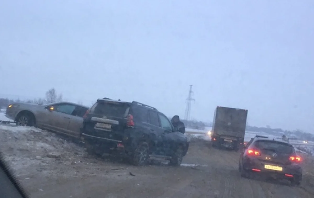 Как сообщают очевидцы, внедорожник и две иномарки столкнулись на трассе по направлению в область, возле с. Сергиевское. Одна из машин вылетела на обочину.