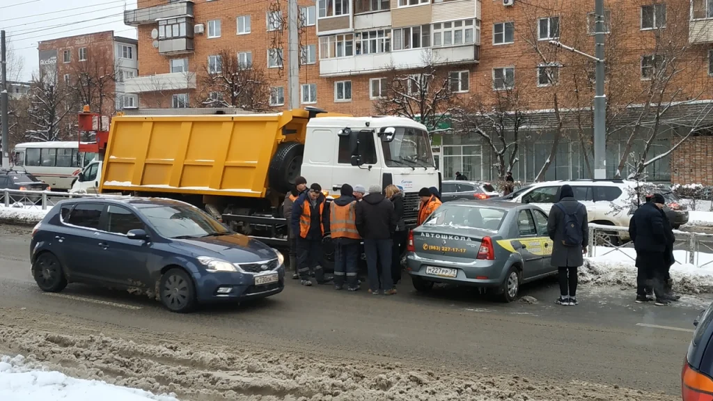 В Пролетарском районе Тулы самосвал протаранил учебный автомобиль