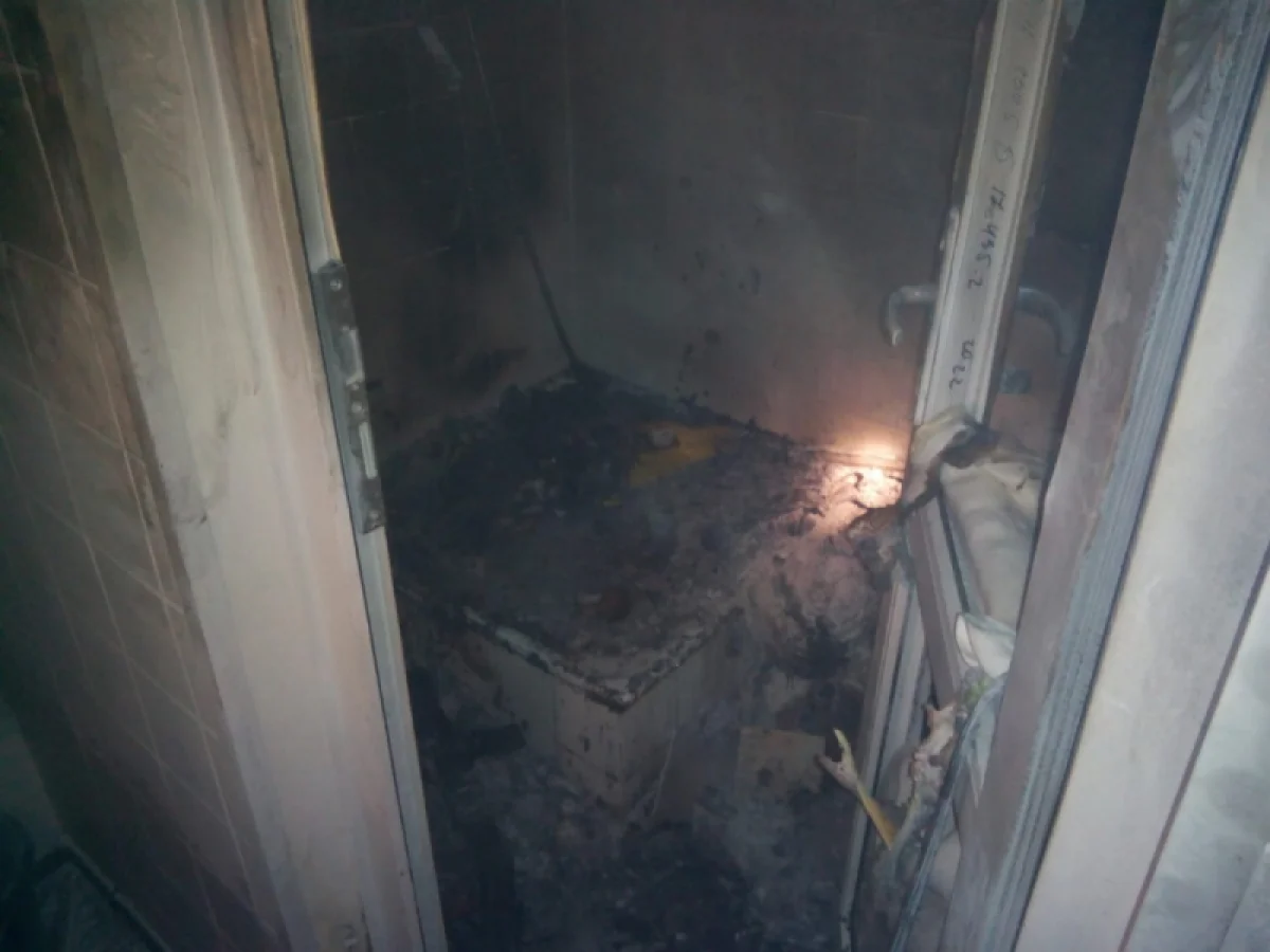 В результате происшествия на 2-ом этаже в душевой комнате сгорел хозяйственный инвентарь, закоптились стены по всей площади.