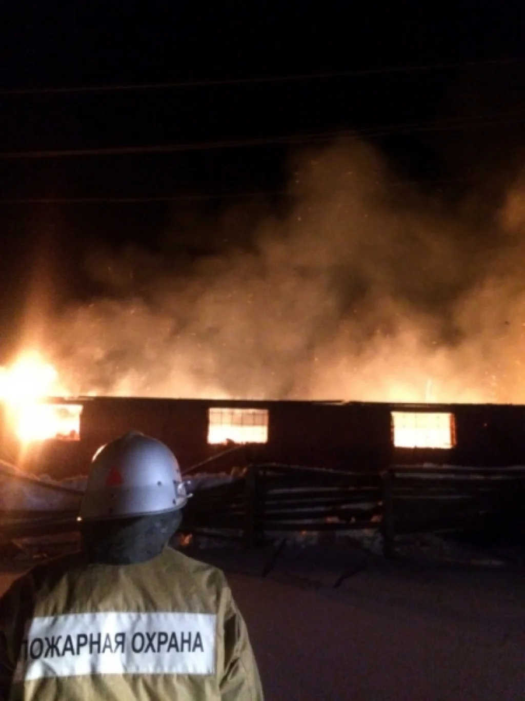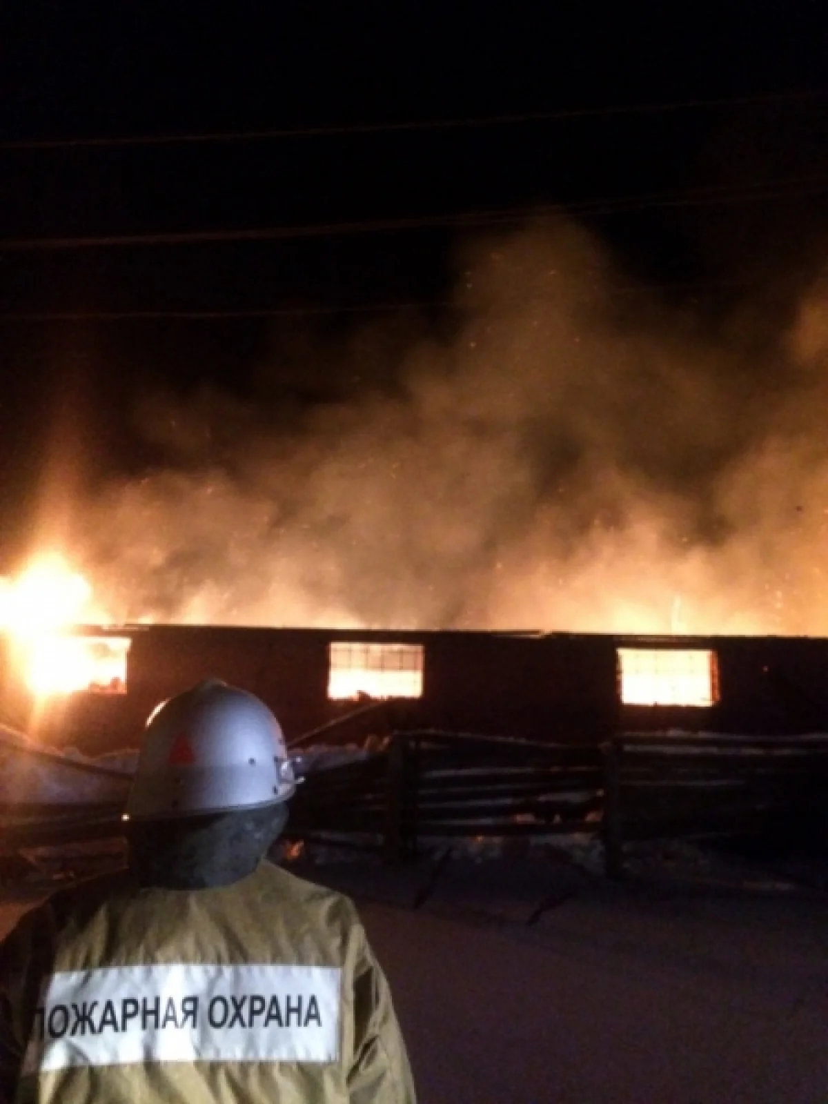 В результате происшествия сгорела и обрушилась кровля, строение выгорело внутри.