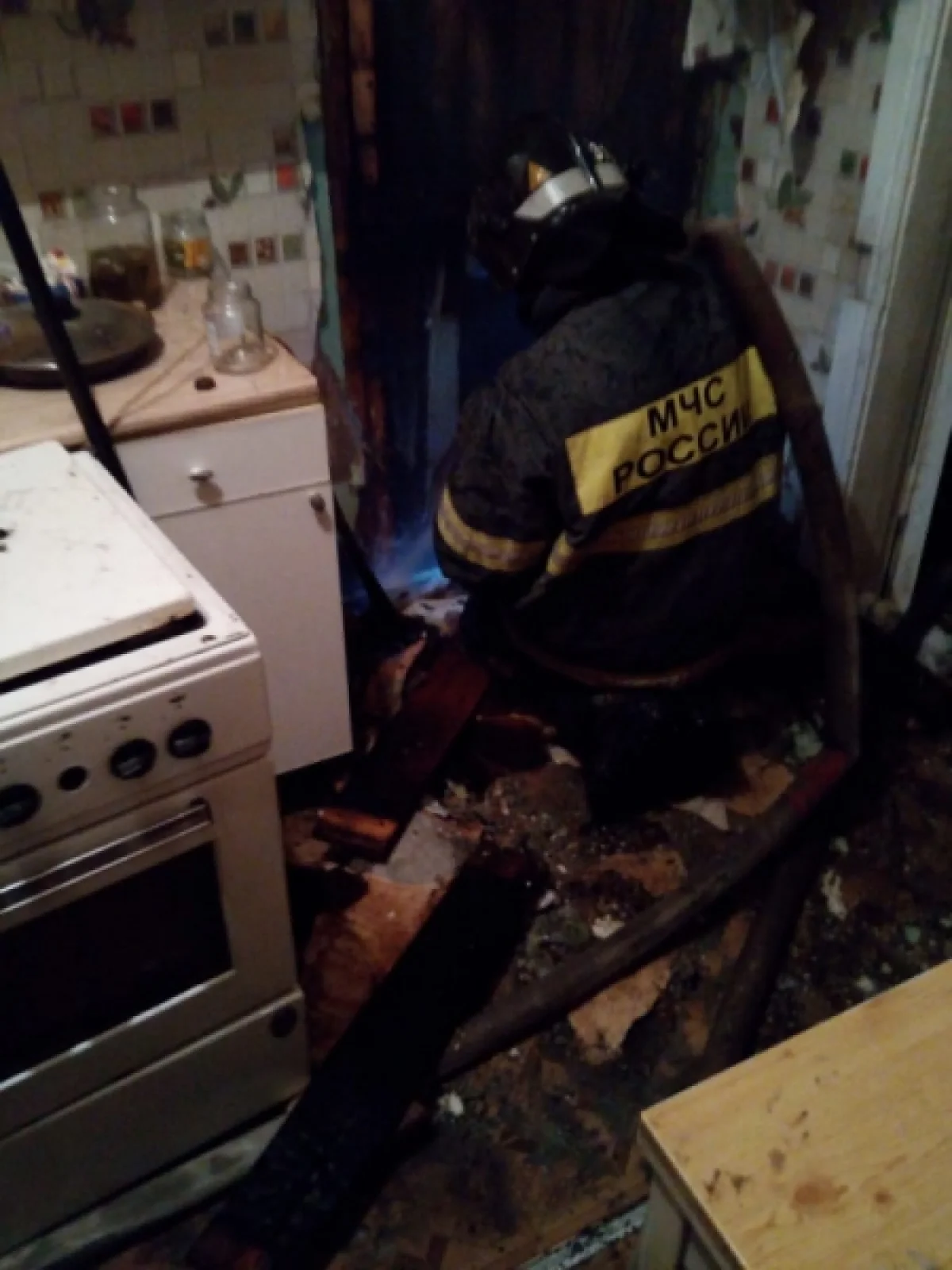 В результате происшествия в кухне размером 3х2 м обгорела стена на площади 1 кв.м.