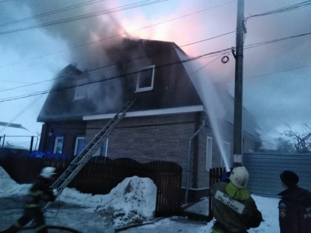 На улице Карбышева в Туле пожарные целый час тушили горящий дом