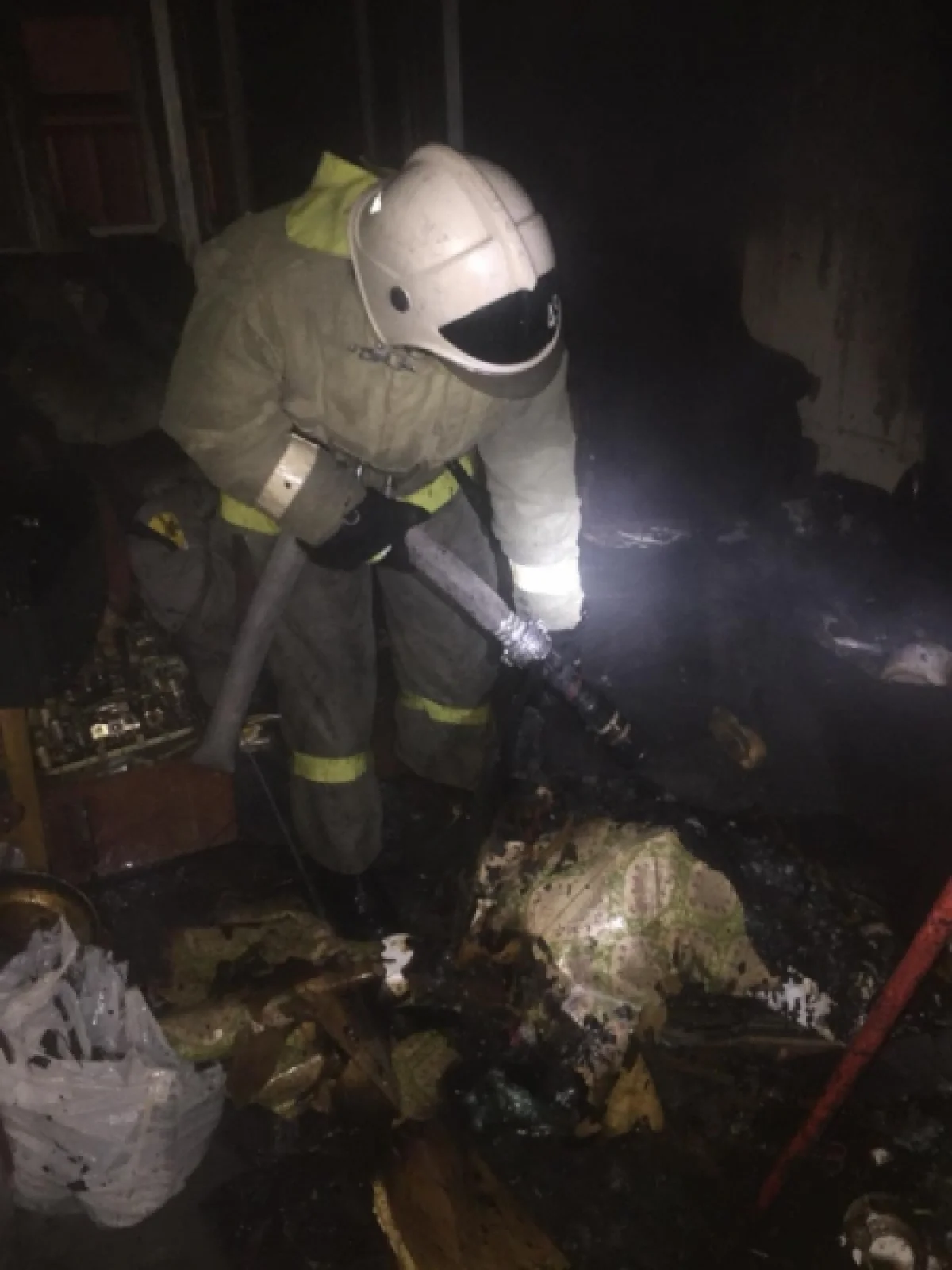 В комнате размером 3х4 метра сгорели постельные принадлежности, закоптилась стена. Пострадавших нет. Причина пожара устанавливается.