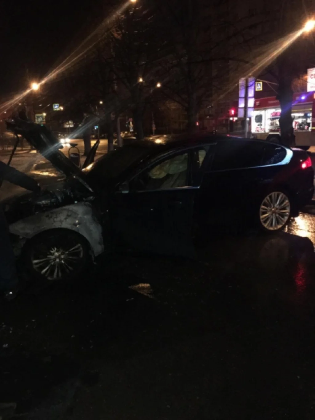 В результате происшествия обгорели передние колеса, выгорел моторный отсек, оплавилась приборная панель.