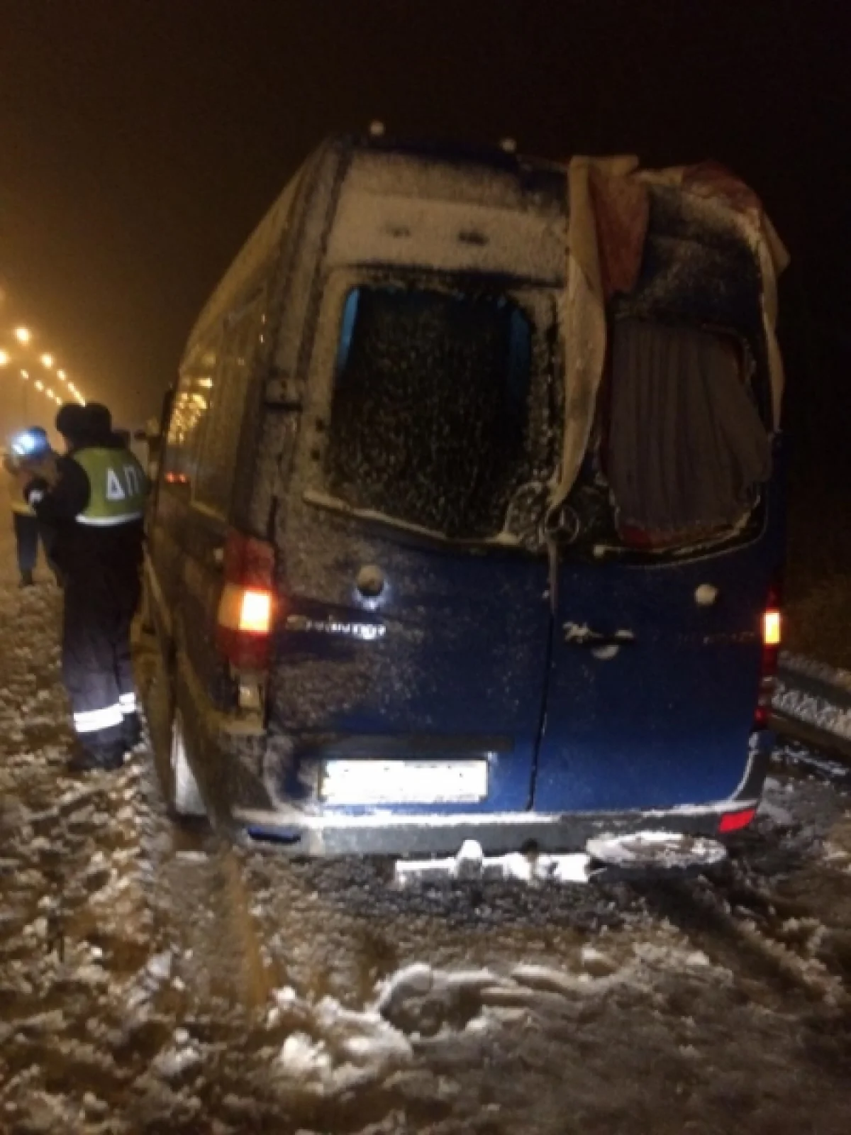 Ночью под Тулой микроавтобус «Мерседес» влетел в ограждение