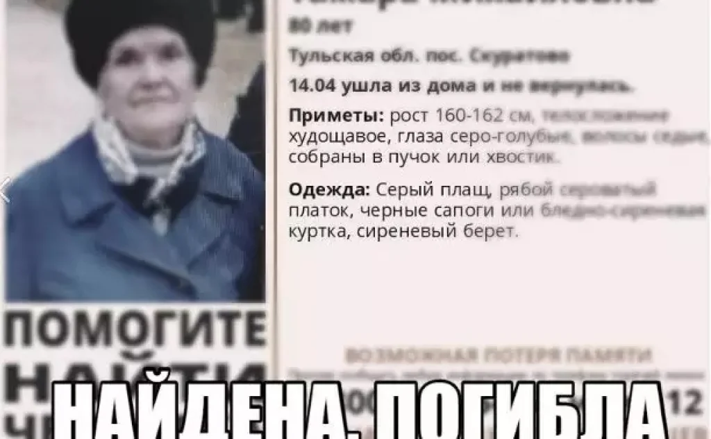 Пропавшую в Туле пенсионерку насмерть сбила машина