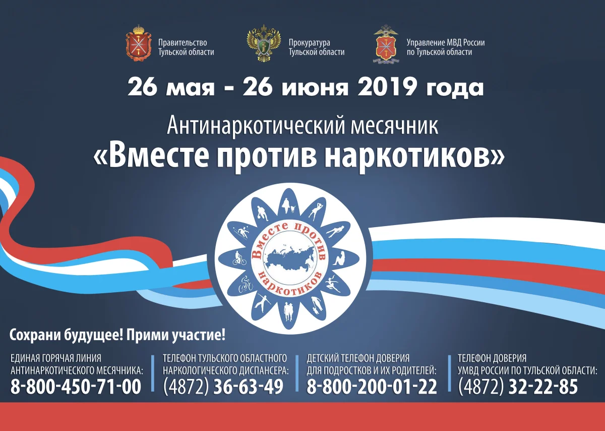 В период с 26 мая по 26 июня на территории Тульской области проводится межведомственная профилактическая акция «Вместе против наркотиков». План мероприятий утверждён губернатором Алексеем Дюминым.