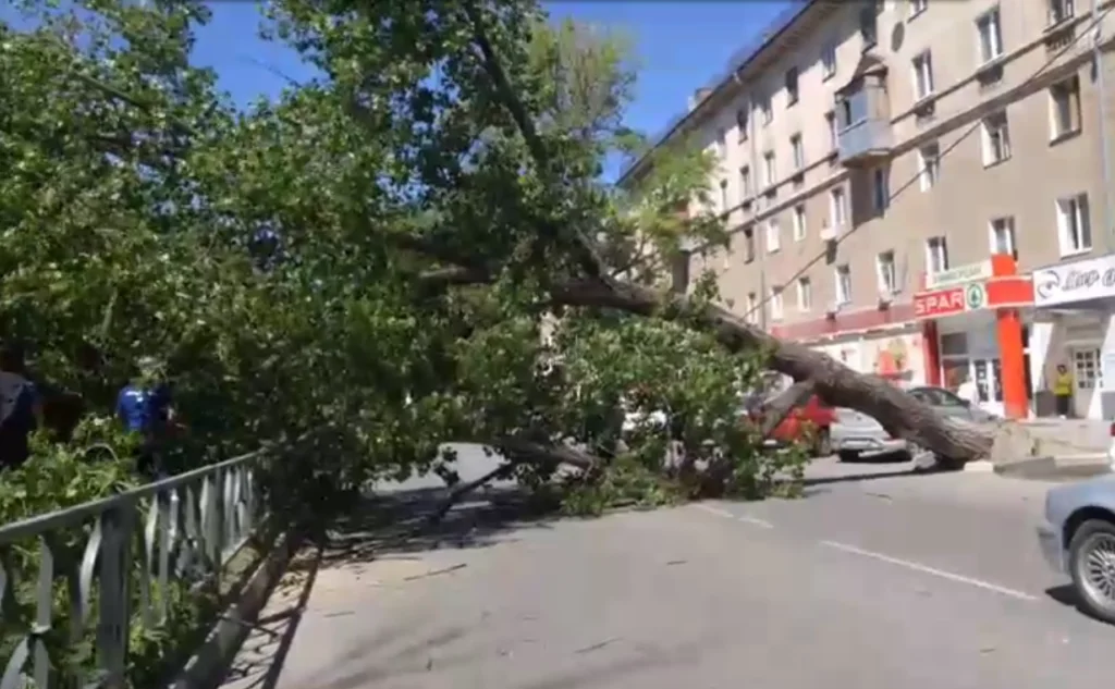 В Туле на проезжую часть рухнул гигантский тополь, зацепив проезжающую машину