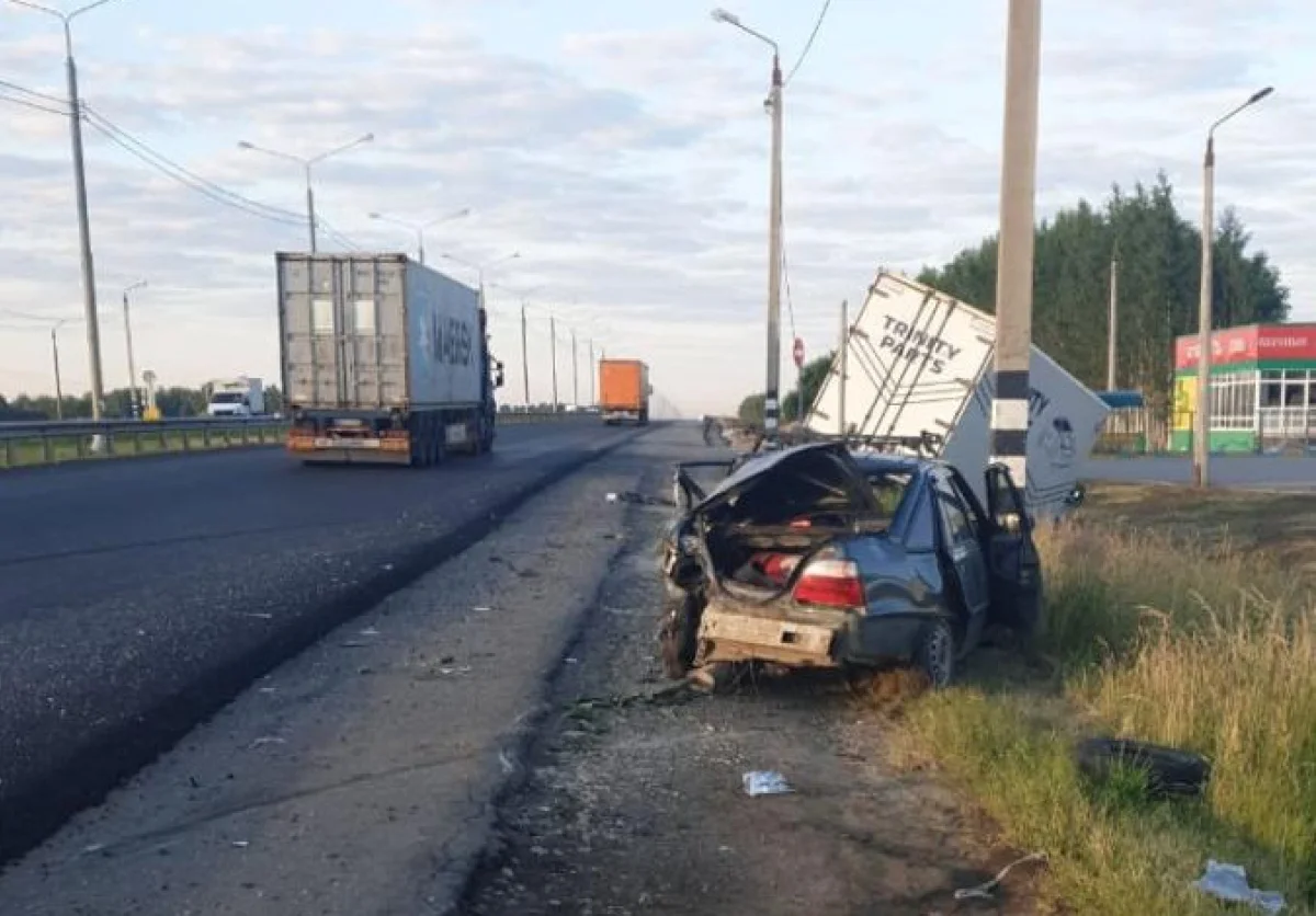 Под Тулой грузовик протаранил «Нексию» и улетел в кювет