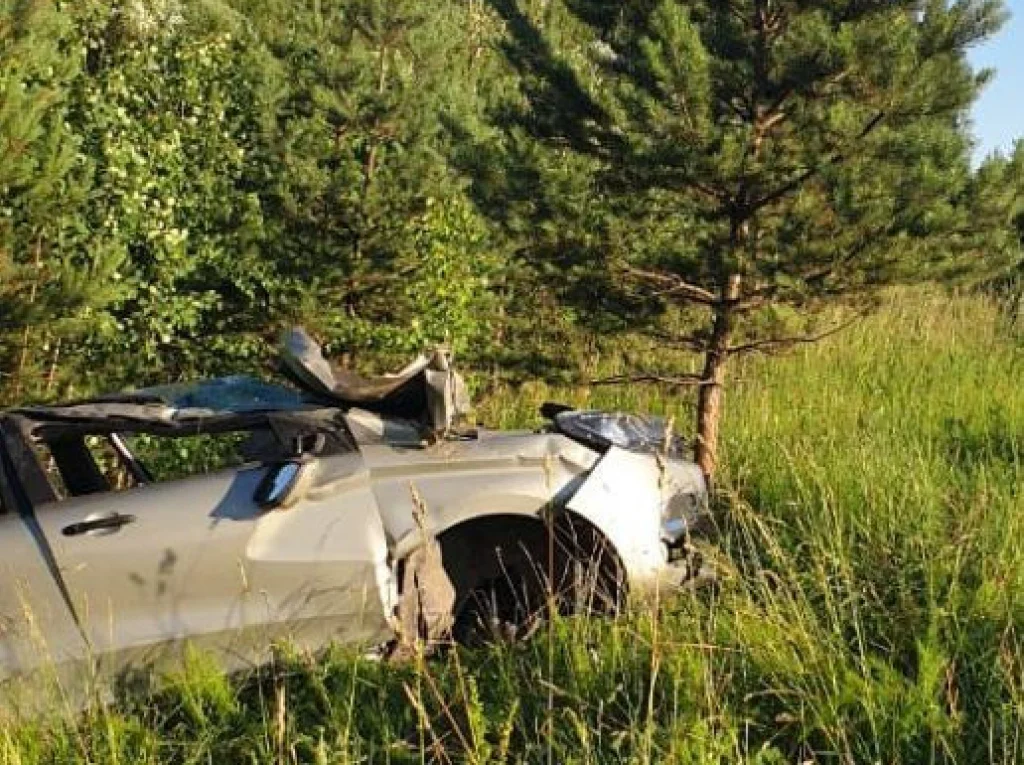 Водитель «Лады X-RAY» предположительно не справился с управлением. В результате автомобиль съехал в кювет, врезался в сосну и перевернулся.