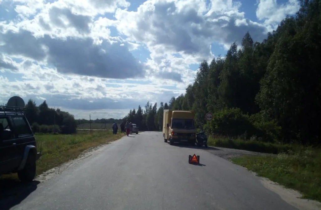 Водитель грузовика Mercedes-Benz 308D въехал в мотоцикл «Ирбис», двигающийся в попутном направлении. За рулём мотоцикла находилась 52-летняя женщина.