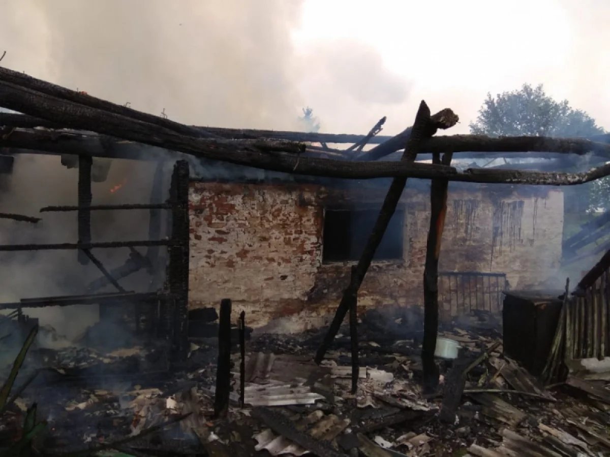 В результате происшествия сгорела и обрушилась крыша, дом выгорел внутри.