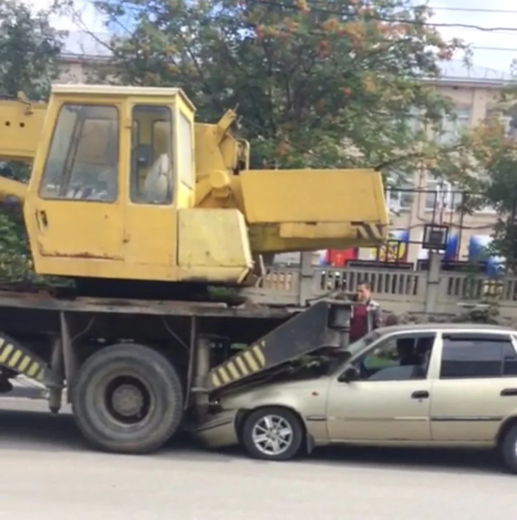 Бампер всмятку: в Туле автокран "раскатал" легковушку