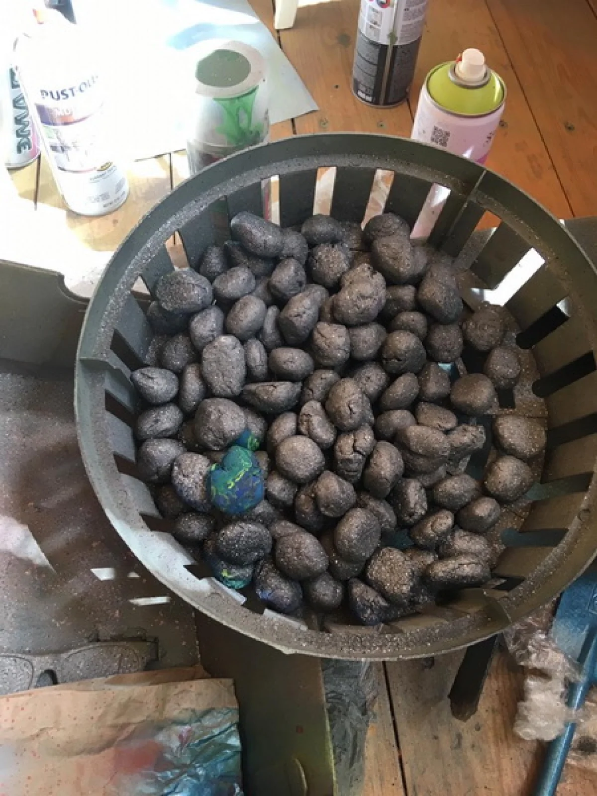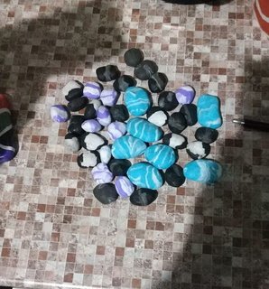 под разноцветные камни и пробки.