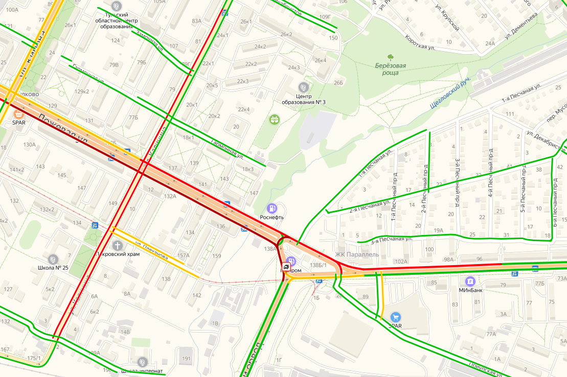 Судя по Яндекс.Картам, затруднено движение по проспекту Ленина в сторону центра, по ул. Фридриха Энгельса, Староникитской, Калинина, Ложевой и Металлургов.