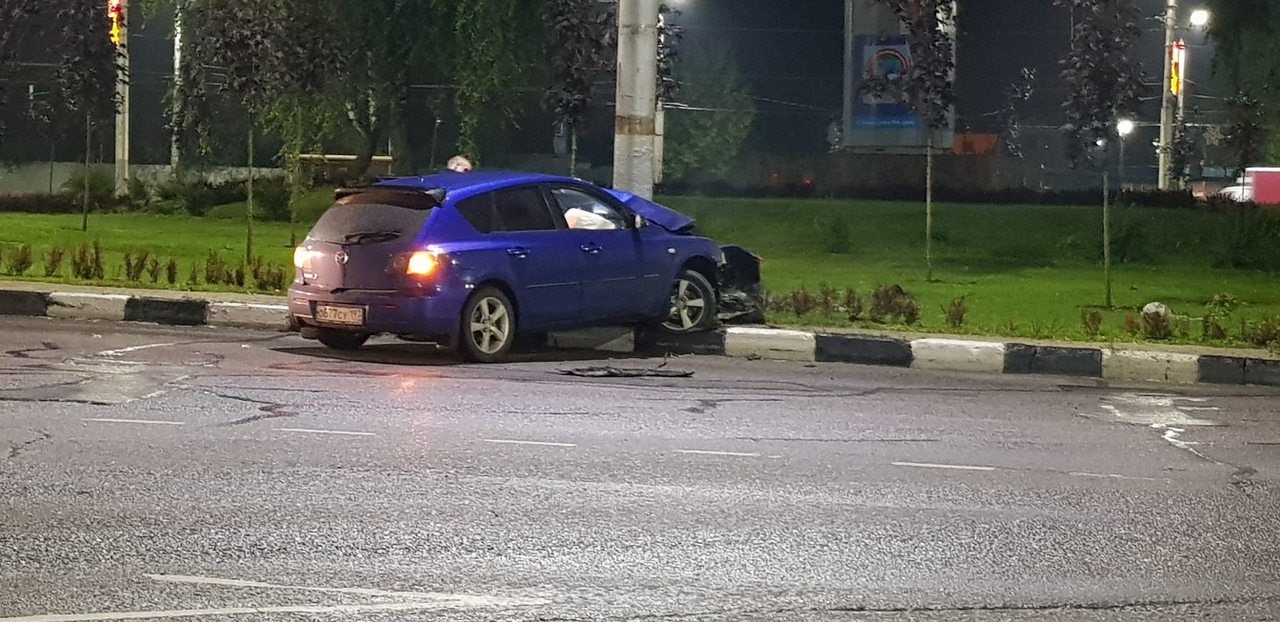 Авария на кругу Короленко в Туле: от удара «Мазда» «обогнула» столб