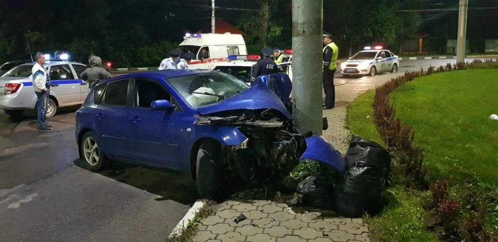 В ночь на 17 июля в Туле произошло жуткое ДТП. На «кругу» улицы Короленко водитель «Мазды» не справился с управлением и врезался в столб линии электропередач.