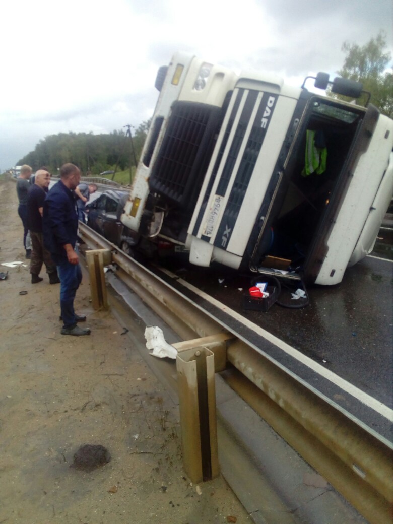 Перевернутая фура перекрыла движение транспорта в обе стороны. Информацию о пострадавших и причинах ДТП установят специалисты.