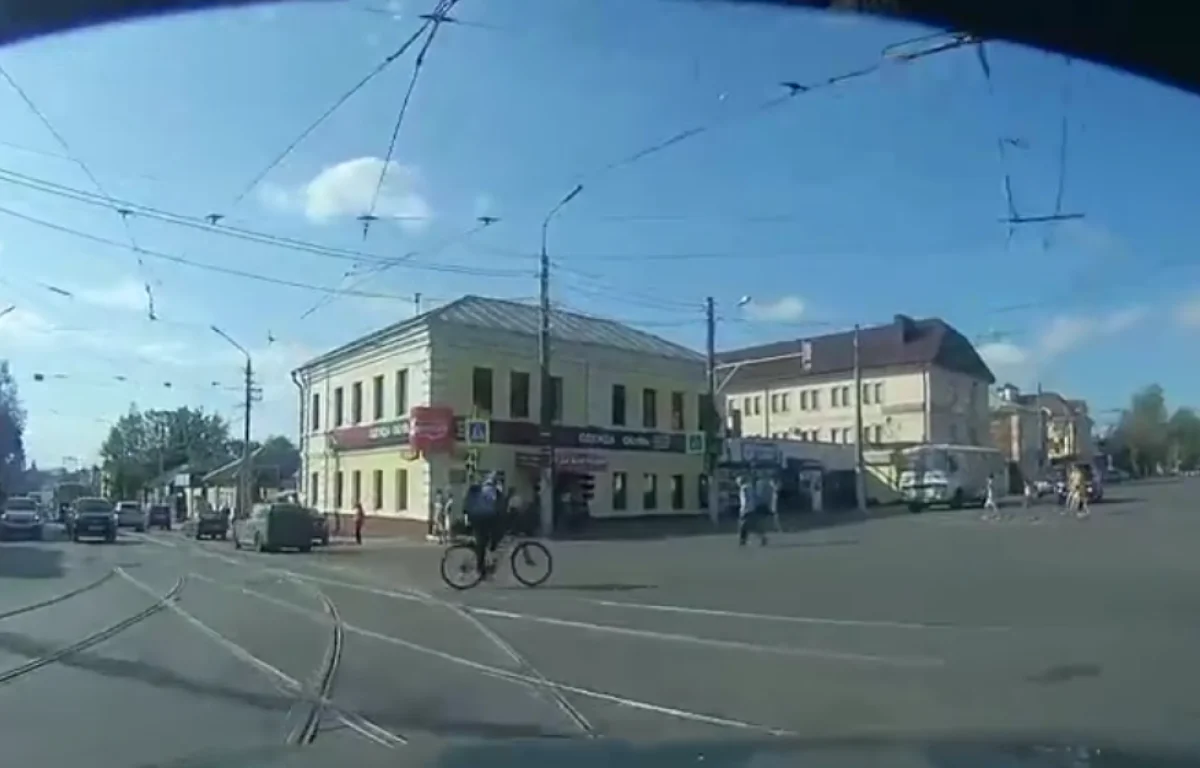 В Туле велолихач промчался на красный свет и чуть не угодил под колеса