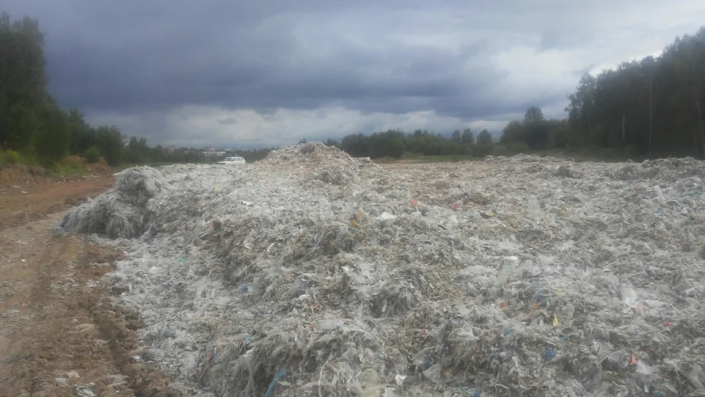 Полигон располагается в 50 метрах от СНТ. Он не оснащен противопожарным оборудованием. Площадь мусорной кучи из пластика насчитывает около 50 соток.