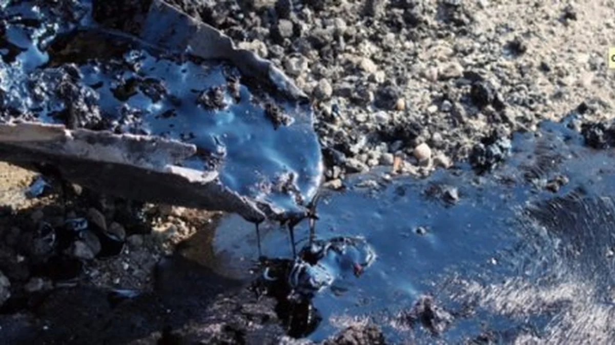 В поселке Комарки под Тулой обнаружили протечку вещества, похожего на мазут. Горючее вытекает наружу прямо из земли. По одной из версий, рядом с новой канализационной насосной станцией под землей оказалась закопана цистерна с мазутом. Цистерну могли повредить при проведении работ по водоснабжению, в результате чего ее содержимое вытекает наружу. Очевидцы сообщают, что лужи мазута сейчас достигают 3-4 метров в диаметре и глубиной около 20 см.