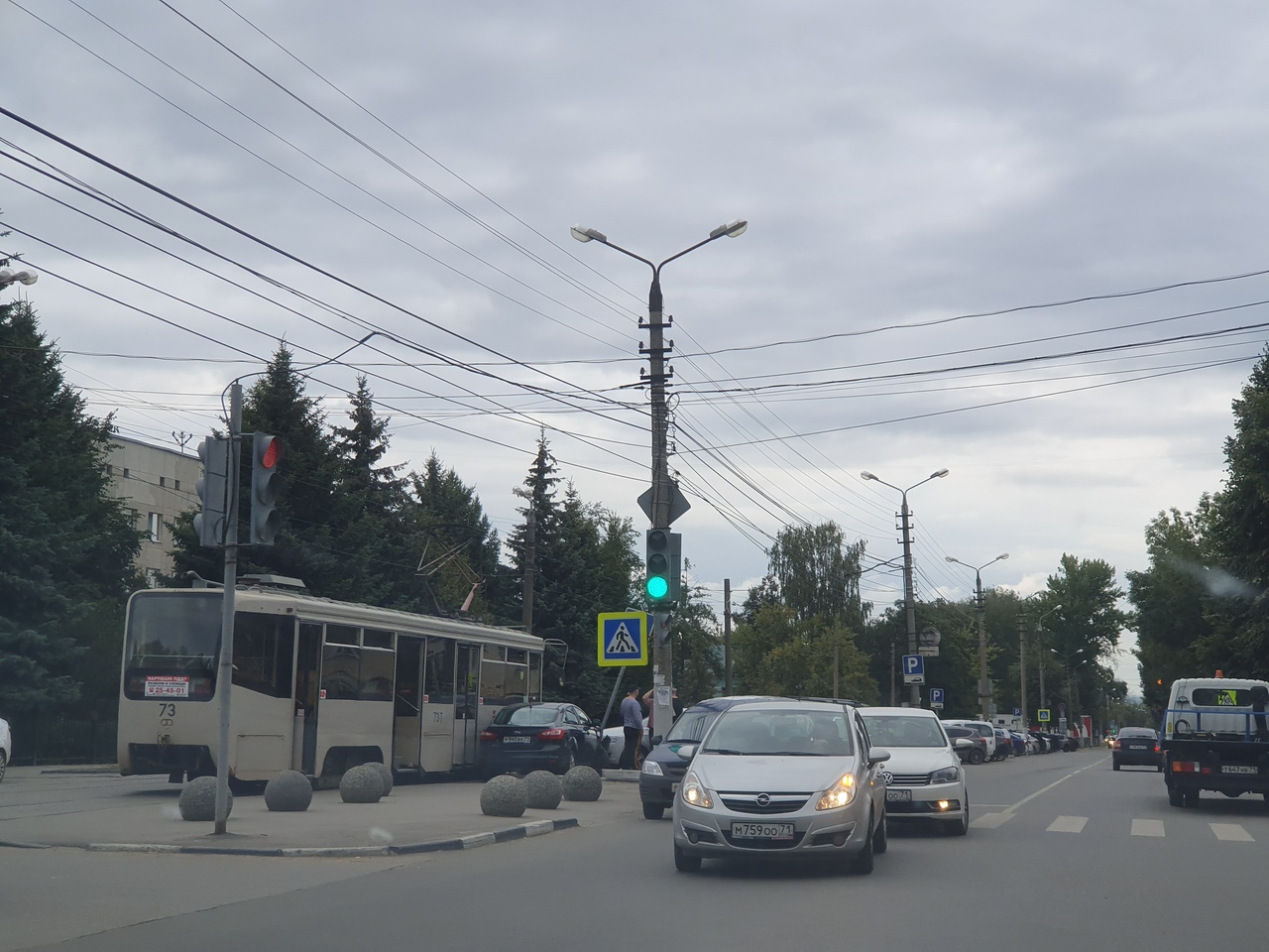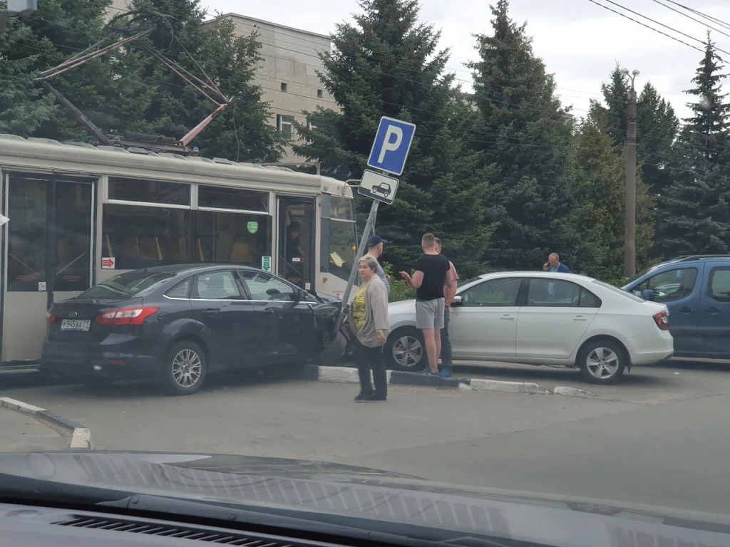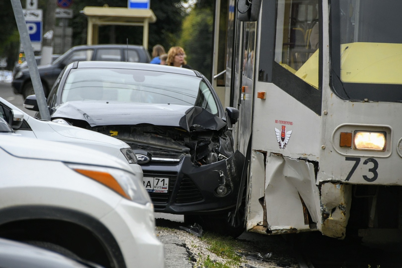 Днем 7 августа в центре Тулы произошло ДТП с участием легковушки, которое парализовало движение трамваев и собрало толпу зевак.