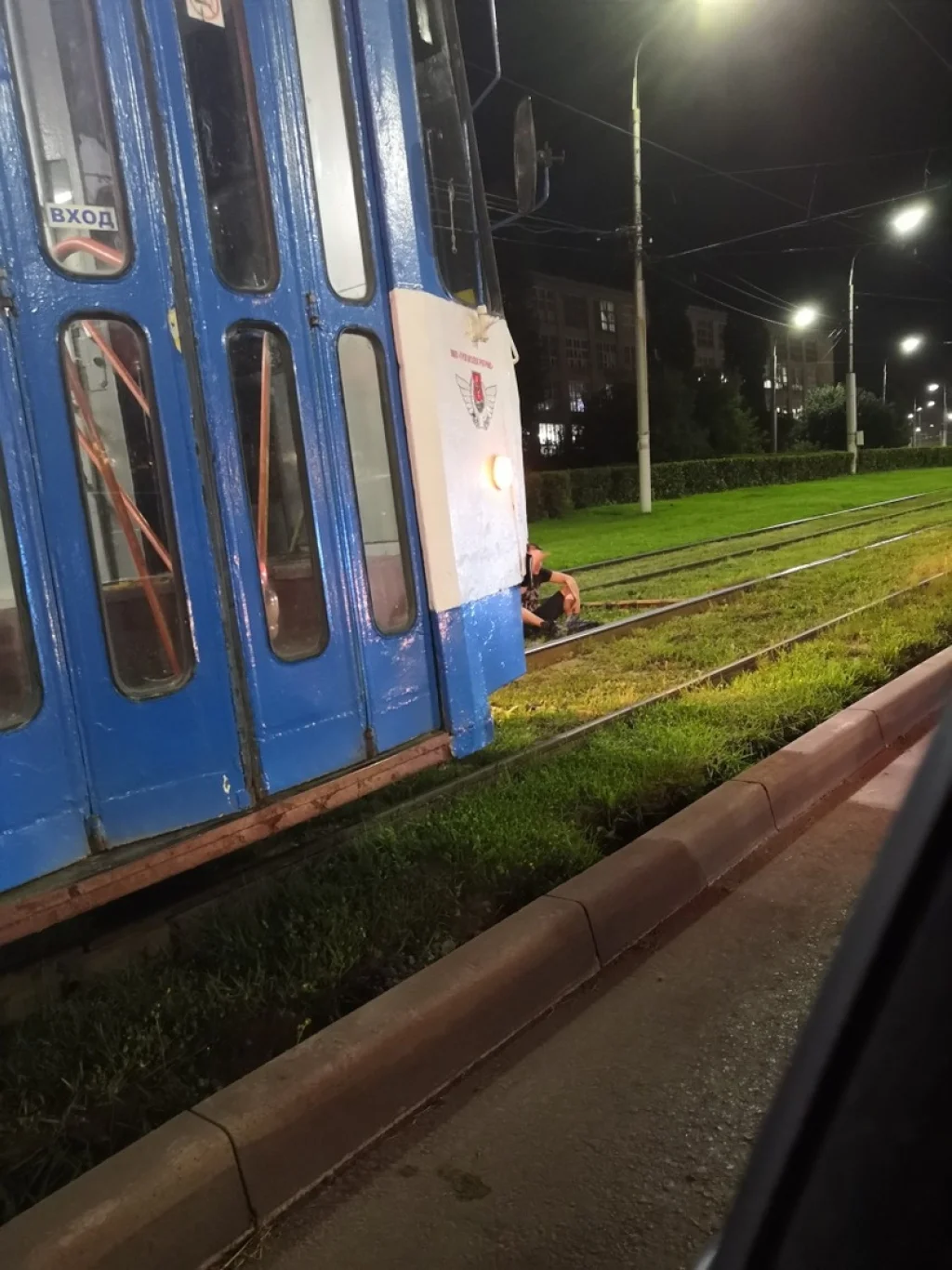Попросить освободить пути и дать проехать трамваю вышла его водитель. Женщина пыталась договориться с мужчиной. Он поднялся, но покидать рельсы не торопился. По словам очевидцев, мужчина даже провоцировал конфликт.