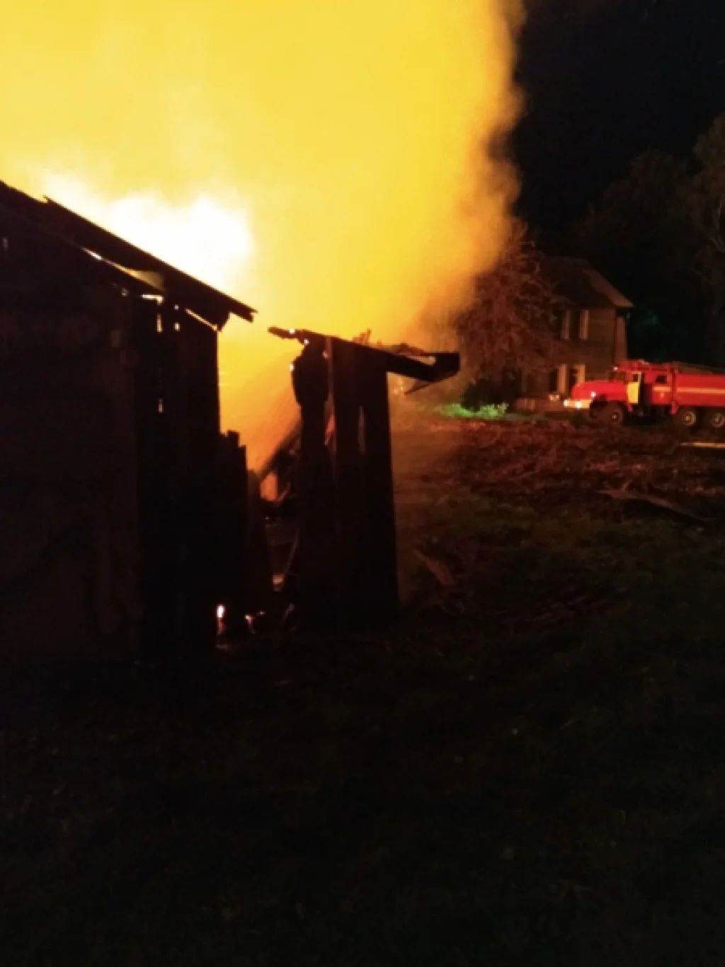 Пожарные боролись с огнем на протяжении 43 минут, возгорание удалось потушить, однако постройку было уже не спасти — она выгорела полностью.