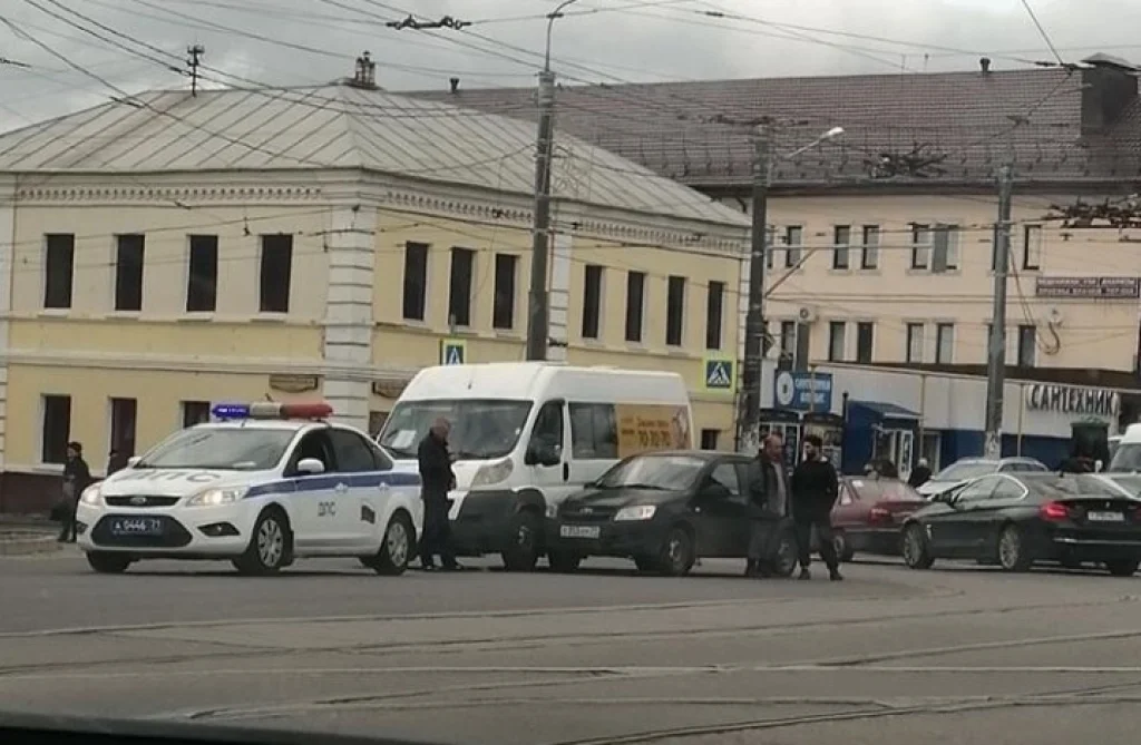 В Туле на Пролетарской маршрутка и легковушка не поделили дорогу
