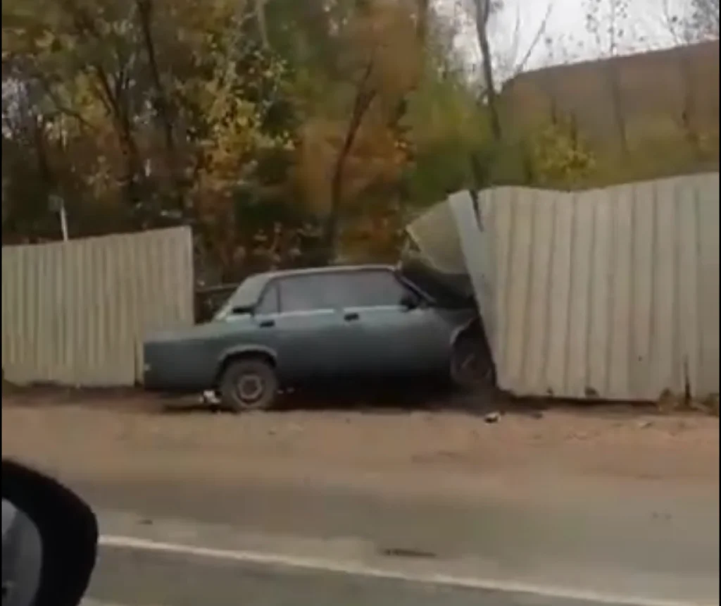 В Туле на Новомосковском шоссе «ВАЗ» влетел в забор городской свалки. Видео
