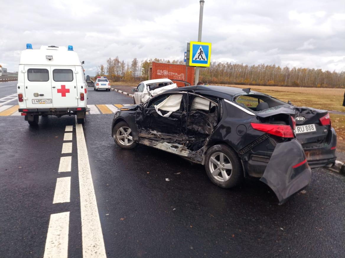 На трассе под Тулой «Киа» протаранил остановку: пострадали трое