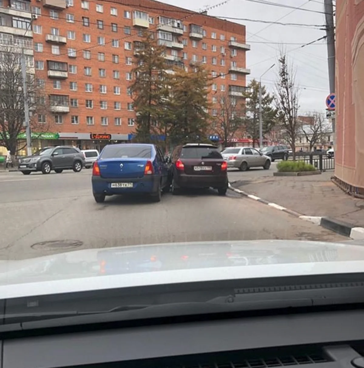 Днем 7 октября центр Тулы снова оказался в пробке из-за столкновения двух иномарок: «Рено» и «Шкоды». На ул. Благовещенской при выезде на Советскую автомобили встретились, когда, по всей видимости, один решил обогнать другого.