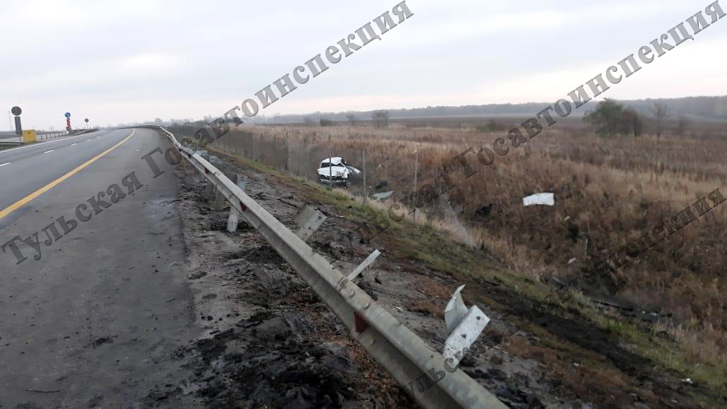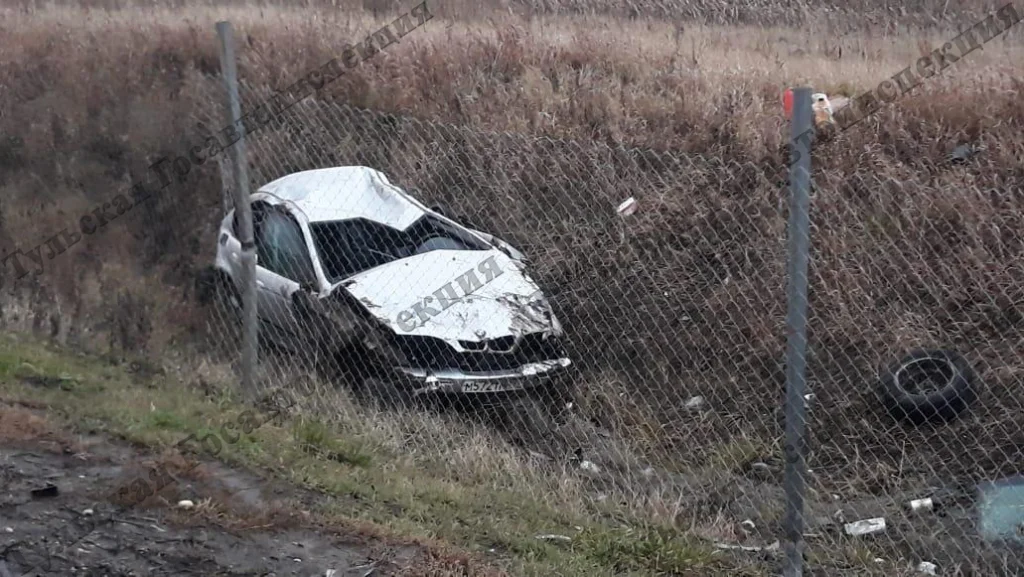Под Тулой «БМВ» вылетел в кювет, снес два ограждения и перевернулся. Водитель чудом остался жив