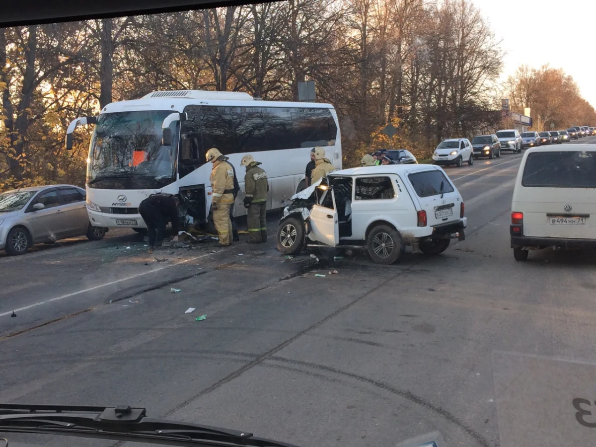 Утром 16 октября на Косой Горе столкнулись автомобиль «Нива» и автобус Hyundai. Легковушка получила значительные механические повреждения.