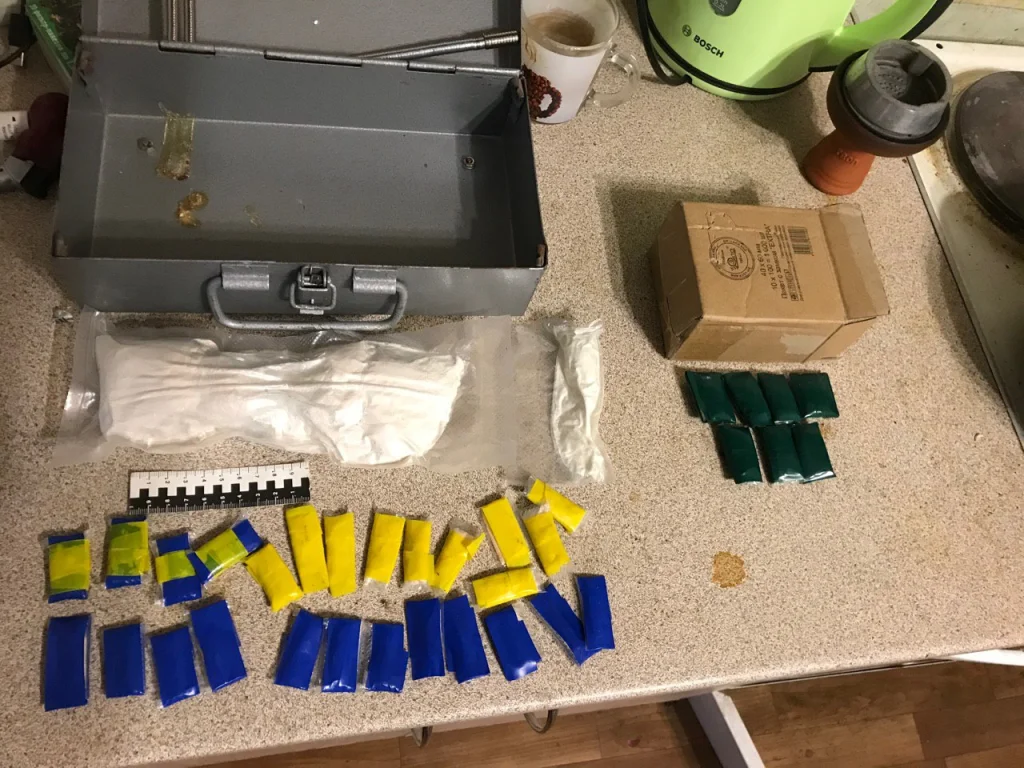 «Работал» он в съёмной квартире в Пролетарском районе города, где хранил как приготовленные для сбыта в виде «закладок», так и нефасованные наркотики – мефедрон, амфетамин,гашиш, МДМА, каннабис, общей массой около 800 г, а также предназначенные для упаковки и фасовки наркотиков материалы.