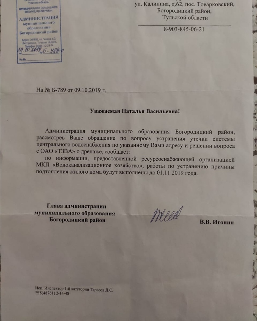 Также, в соцсетях появилась информация, что ранее с этой проблемой жители поселка уже обращались к местным властям, на что, через время, получили ответ о 100% выполнении работ, хотя по факту все пребывало в «той же фазе». Людей смущает не столько факт аварийного потопа, насколько реальное бездействие местных властей. Пример письма можно увидеть на данном фото, сделанным одной из жительниц «водяного» дома.