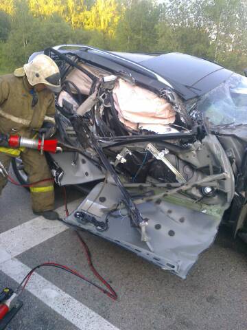 На месте выяснилось, что в "Ниссане" есть пострадавший. Чтобы его достать из покореженной машины спасателям пришлось задействовать пециальный инструмент "Спрут".