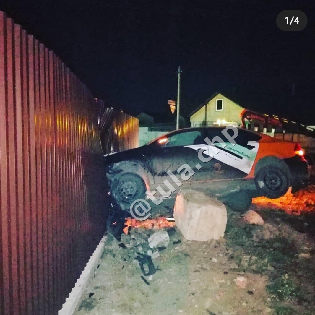 В Туле каршеринговый автомобиль впечатался в забор