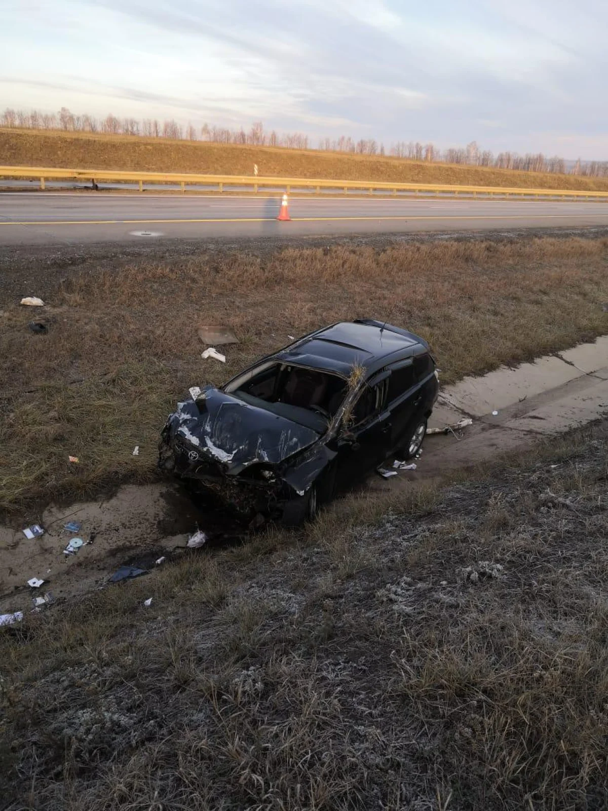 В субботу, 23 ноября, в Тульской области на трассе «Дон» произошло ДТП. Около 8 утра на 245-м километре автодороги 49-летний мужчина не справился с управлением, съехал в кювет и опрокинулся. От удара машина получила сильные повреждения, ей разворотило весь перед.