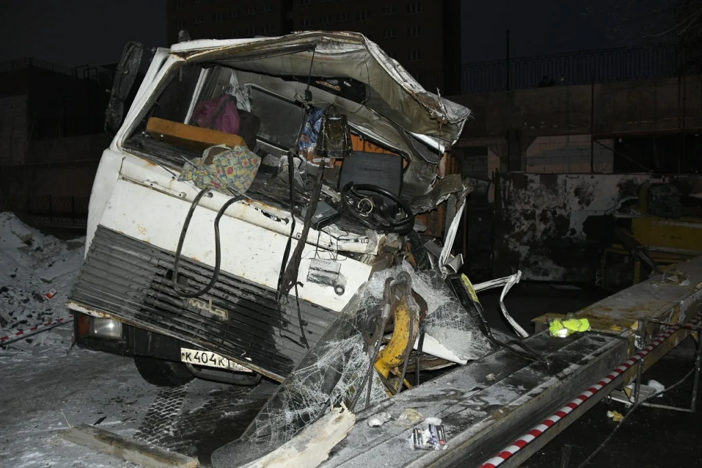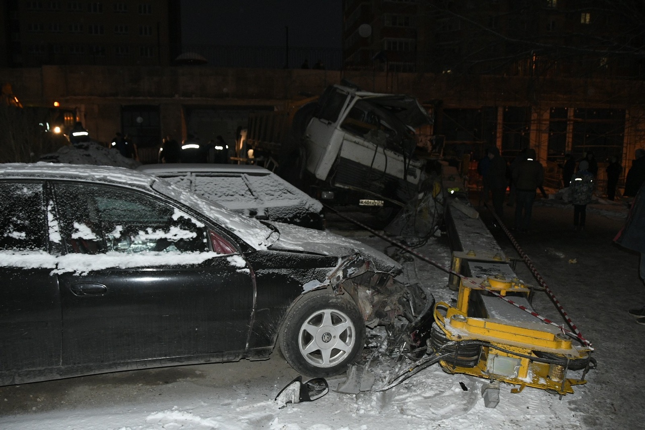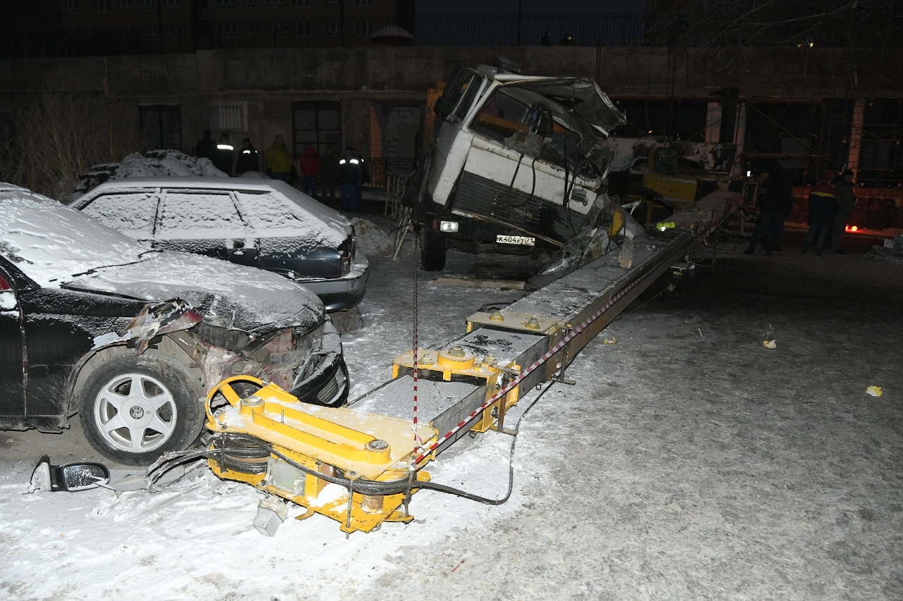 Конструкция «прилетела» прям на крышу рядом стоящего КамАЗа, внутри которого находился водитель. Удар был настолько сильным, что от полученных травм водитель скончался на месте.
