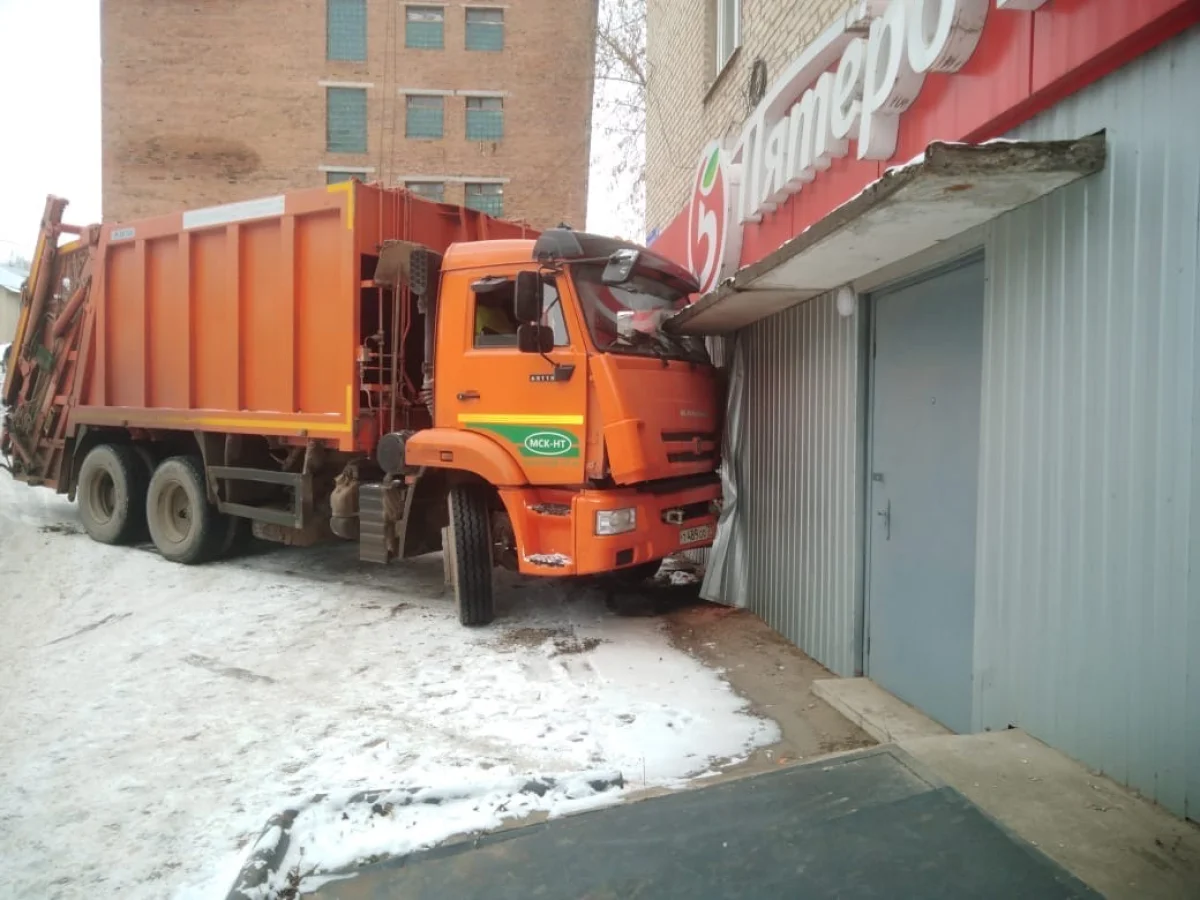 В Тульской области мусоровоз «поскользнулся» и протаранил продуктовый магазин