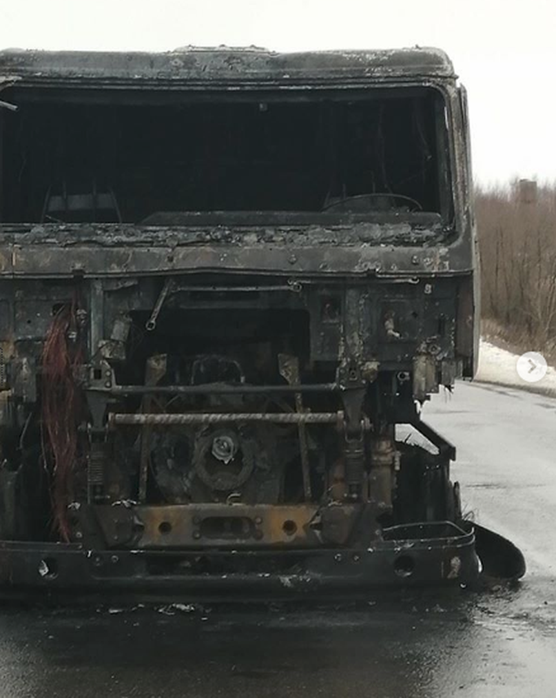 В результате произошедшего транспортное средство выгорело полностью внутри и снаружи. О пострадавших пока не сообщается.