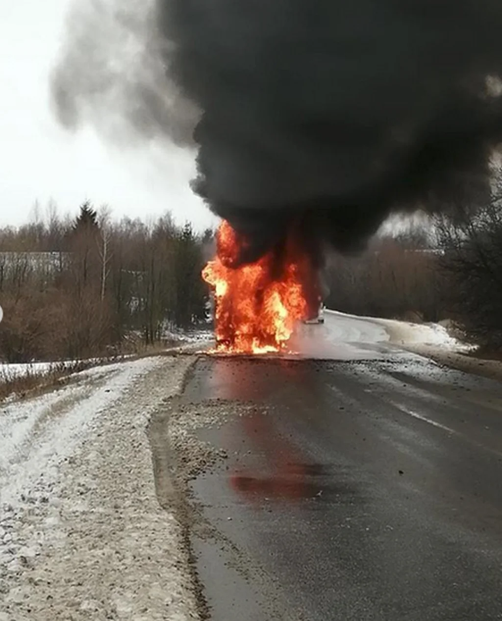 На участке трассы в Одоевском районе возле деревни Ново-Архангельское загорелся грузовик. О полыхал с такой силой, что пламя поднялось на несколько метров вверх и было видно издалека — зрелище не для слабонервных.