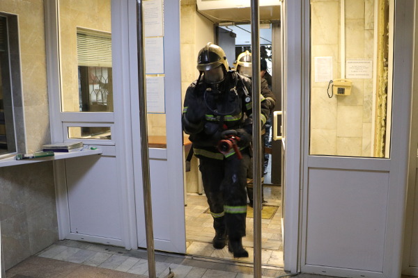 В кратчайший срок к зданию подъехала пожарная машина с командой противопожарной службы МЧС. Пожарные проверили, не осталось ли людей в опасной зоне. После чего провели ликвидацию условного пожара.
