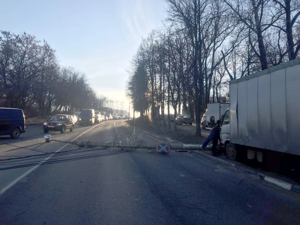 В Туле на Новомосковском шоссе грузовик снес столб: подробности происшествия