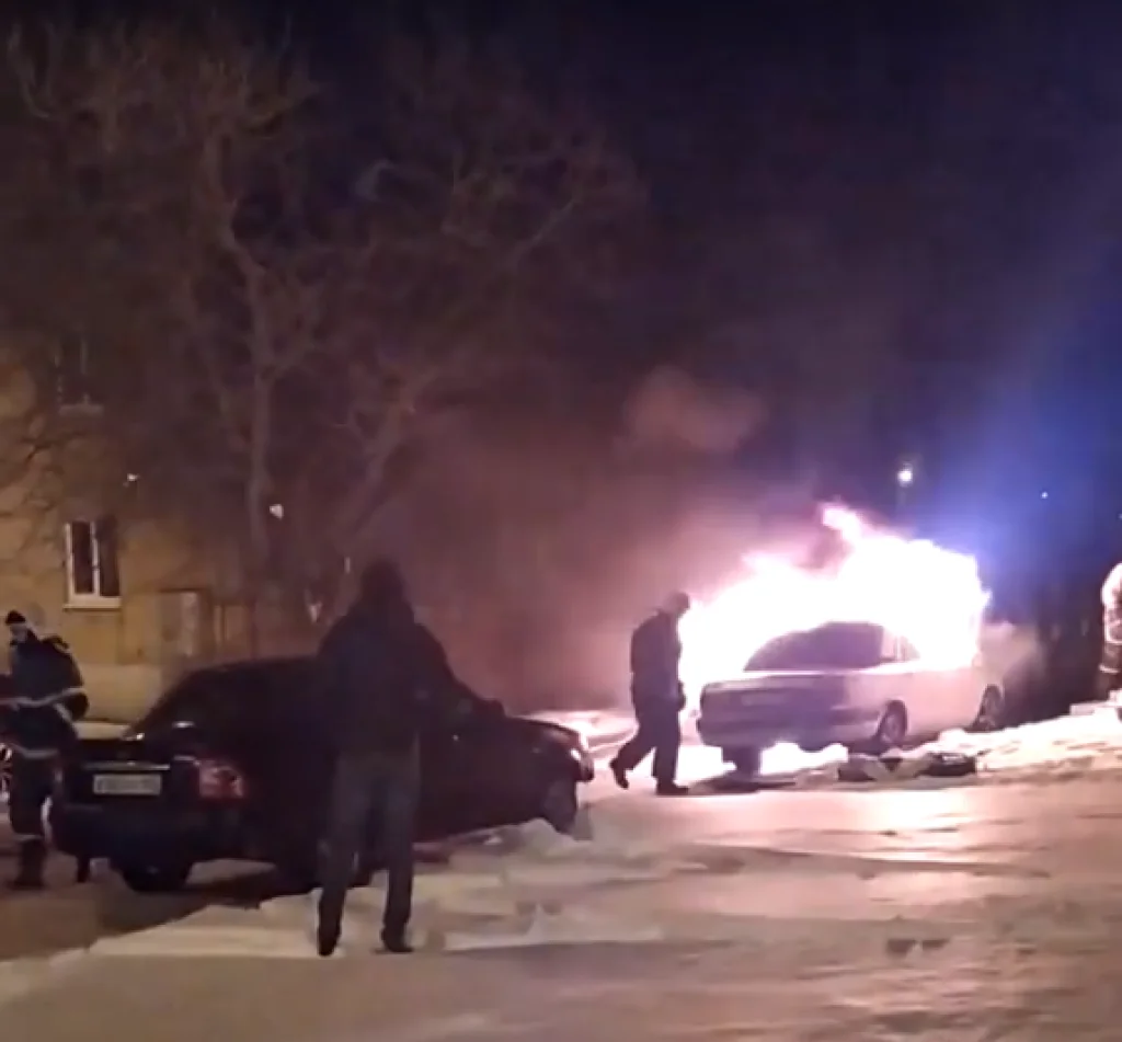 На кадрах видно, как загорелась припаркованная во дворе дома «Волга». Причем вблизи горящего авто стояли другие машины, огонь мог запросто перекинуться и на них.