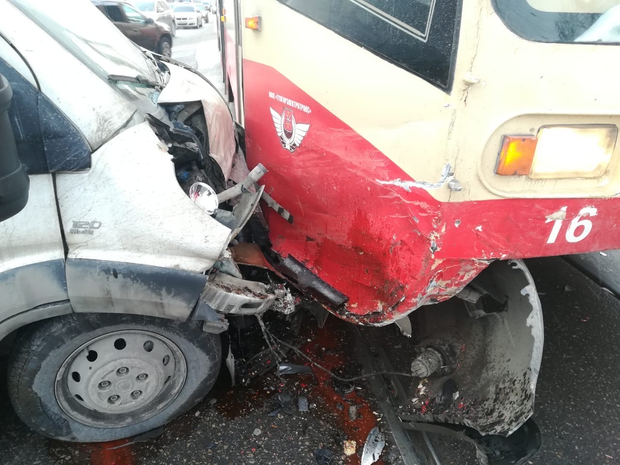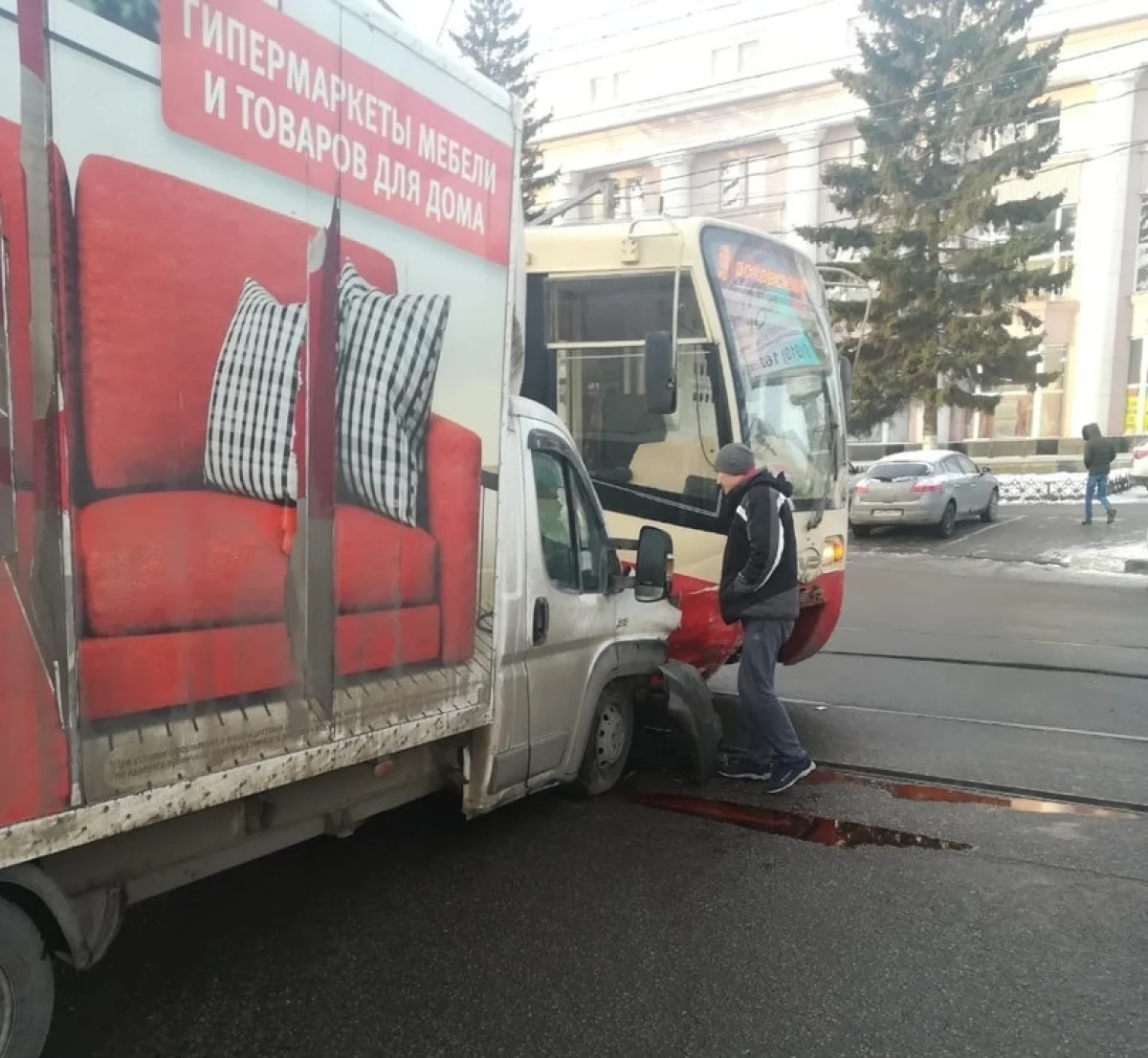 Грузовая "ГАЗель" и трамвай не поделили дорогу на Советской в Туле
