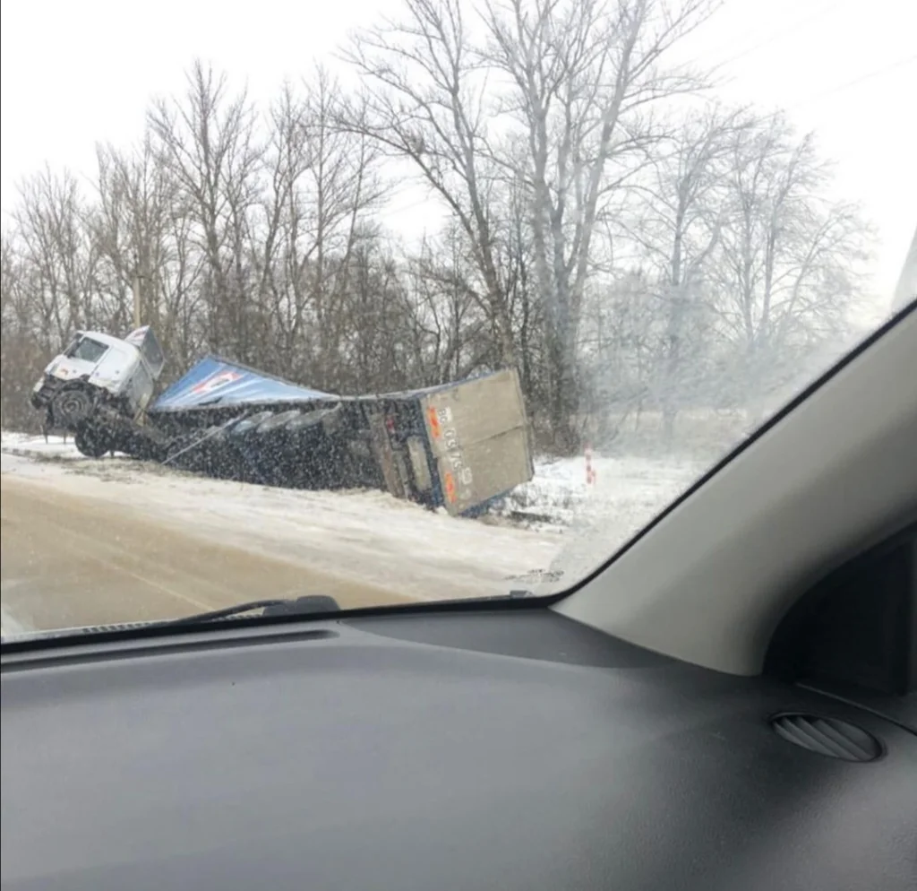 Сегодня, 24 января, в социальных сетях появилась новость об опрокинутом на обочине большегрузе. По предварительной информации, никаких других участников ДТП замечено не было.